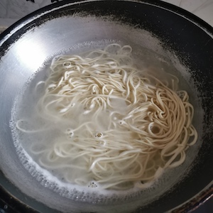 - 将水放入炒锅或平底锅中煮沸,然后加入面条。
