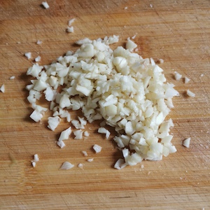 - Chop 5 of the garlic cloves and set aside.