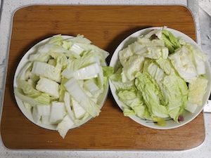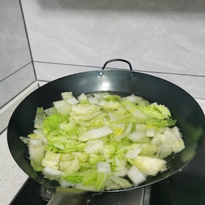 - 因为白菜的茎和叶厚度不一样,所以按照先后顺序进行焯水。