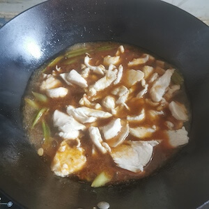 - Add enough water to cover the ingredients, then season with salt, sugar, monosodium glutamate, cooking wine, light and dark soy sauce, and sesame oil. Bring to a boil, then, remove the ingredients and put them in a deep dish. Keep the broth in the wok.1/2 teaspoon salt, 1 teaspoon white sugar, 1/2 teaspoon MSG, 1 teaspoon Shaoxing wine, 1/2 teaspoon dark soy sauce, 1/2 teaspoon toasted sesame oil, 1 teaspoon light soy sauce