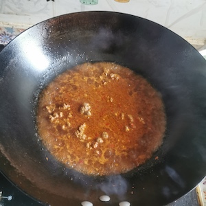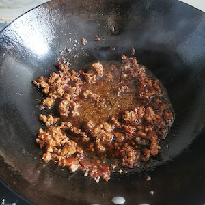 - 豆腐切1.5mm正方形块,葱姜蒜,青蒜,牛肉切碎。