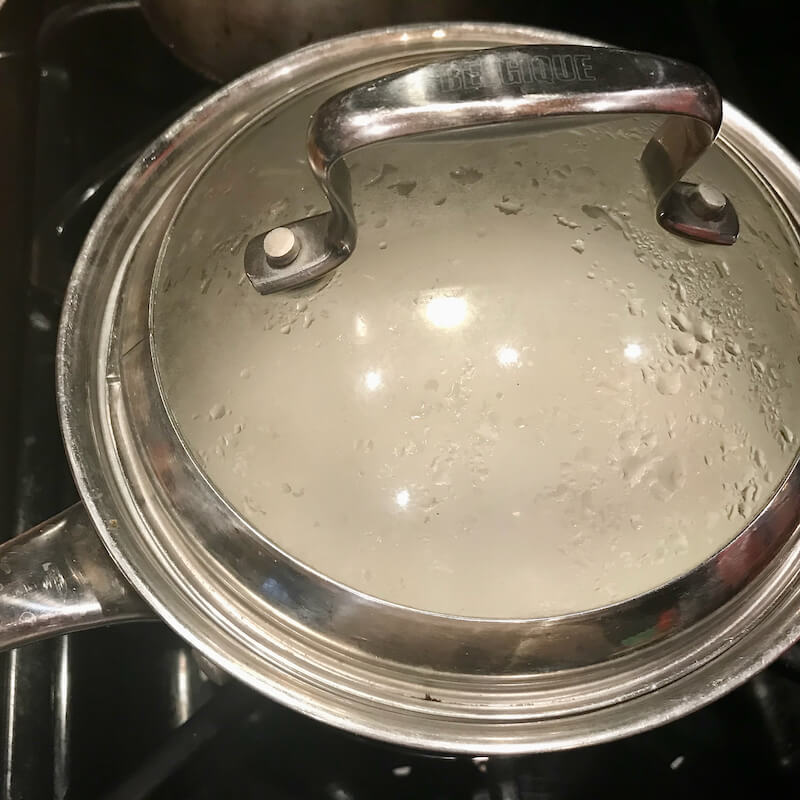- Cover the saucepan and bring the water to a boil. (A clear lid on the sauce pan is very helpful, so you do not have to lift the led and let the water vapor escape.)