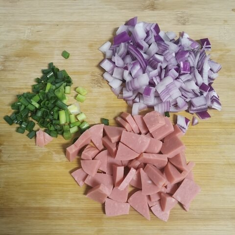 我们的鸡蛋炒饭食谱使用洋葱和火腿作为配料,如果您有自己喜欢的配料,当然可以使用。 请记住,我们需要使用鸡蛋,因为这是鸡蛋炒饭。 您可以在鸡蛋中添加其他蔬菜,例如胡萝卜和绿色蔬菜。 如果加培根,就是培根鸡蛋炒饭。 用你最喜欢的食材做饭和吃饭是一种乐趣。 这是家常菜谱,自己煮吧!