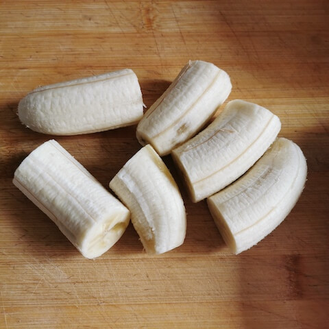 - Peel the bananas and cut each banana into 3 portions.2 bananas