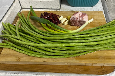 当我还是个孩子的时候,我妈妈喜欢用猪肉炒豆子。 我妈妈总是喜欢用一些肉来煮蔬菜,她说这样会使蔬菜更香。 我妈妈可能是那个村子里特别的“家庭厨师”,因为邻居们独自煮蔬菜作为一道菜。 他们很少在一个锅里同时炒肉和蔬菜。 我今天要做的菜是用猪肉和豆子做的。 我在新东方烹饪学校学到了这个长豆猪肉食谱,它让我想起了我妈妈的烹饪。 这道菜是川菜的一部分。 如果您有兴趣,请与我们一起烹饪。
