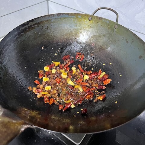 - 注意掌握火力,不要把四川花椒和干辣椒炒糊。