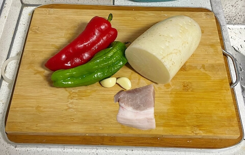在我的中国家庭厨房里,我们有几道红烧菜谱,如红烧鸡肉、红烧排骨和广受欢迎的家常红烧肉。 这些都是肉类菜肴,但在家庭烹饪中,不仅肉类可以红烧,蔬菜也可以红烧。 今天我们要做的是红烧萝卜。 我们将使用质地坚实的白萝卜,这样红烧的效果会更好。 这道菜还包括猪肉,所以不是素食菜肴。