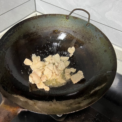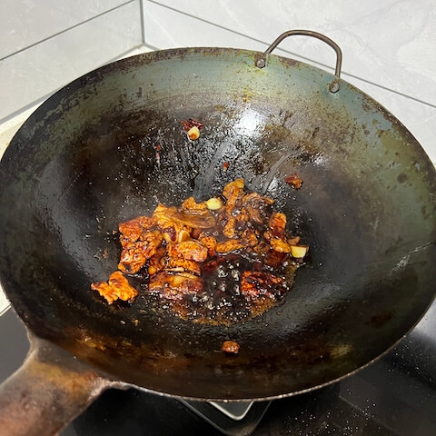 我们用盐来调味。酱油和豆瓣酱都有咸味,因此在调味时,先加入生抽,试味后再加盐。