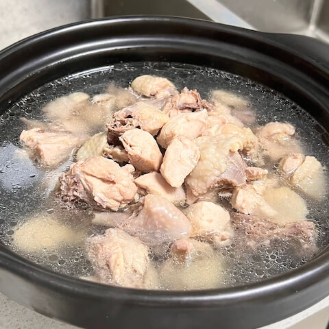 - 尽量使用新鲜宰杀的鸡,尽量把煮沸后的浮沫去除,这样能让成品汤变得更清澈