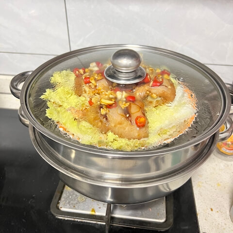 - When taking out the steamed chicken legs, please use steamer tongs or wear oven mitts to protect your hands from being burned. The steam makes the plate very hot, be careful of burns.