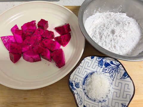 火龙果去皮后可以生吃,也可以用来制作甜点。 有些甜点用火龙果作为染料,使甜点的颜色更自然、更漂亮。 今天我就用番荔枝来做一道火龙果甜点。 步骤很简单,就能做出适合炎炎夏日的甜点。 食谱中使用的木薯淀粉是木薯脱水干燥后提取淀粉制成的粉末。 与玉米淀粉相比,木薯淀粉在制作甜点时具有更大的灵活性。