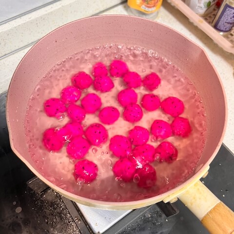 - 制作好的火龙果球,你可以搭配牛奶,酸奶,或者椰奶一起食用。